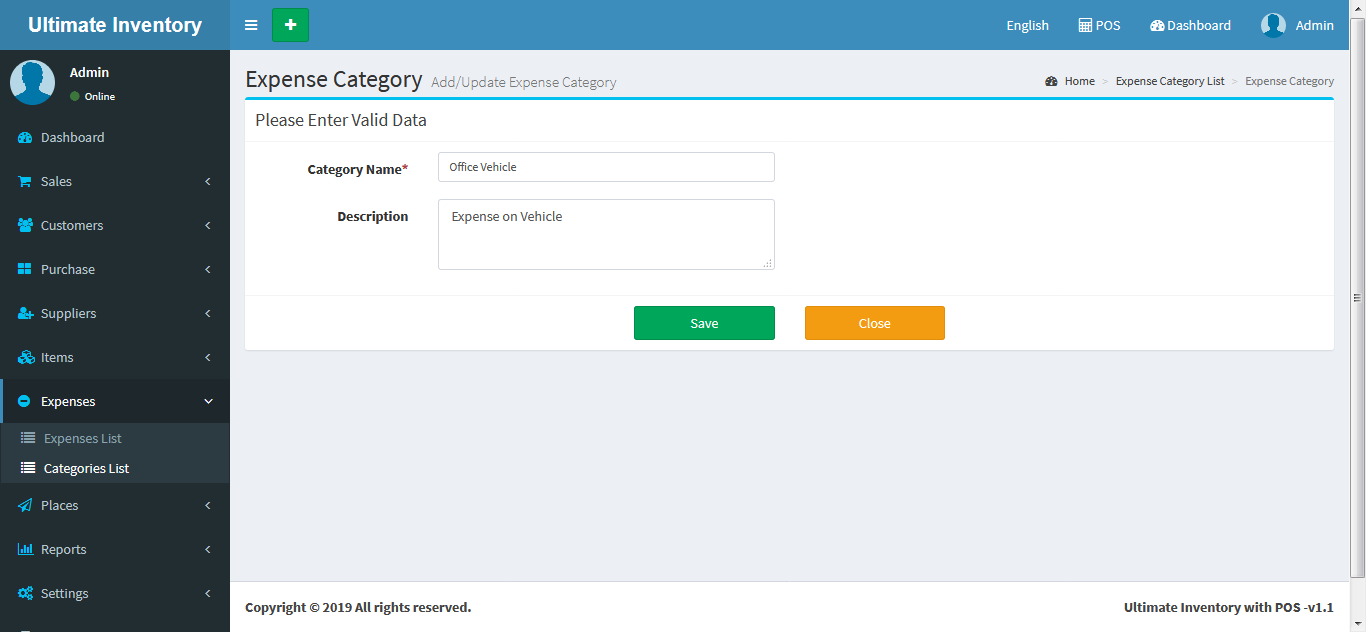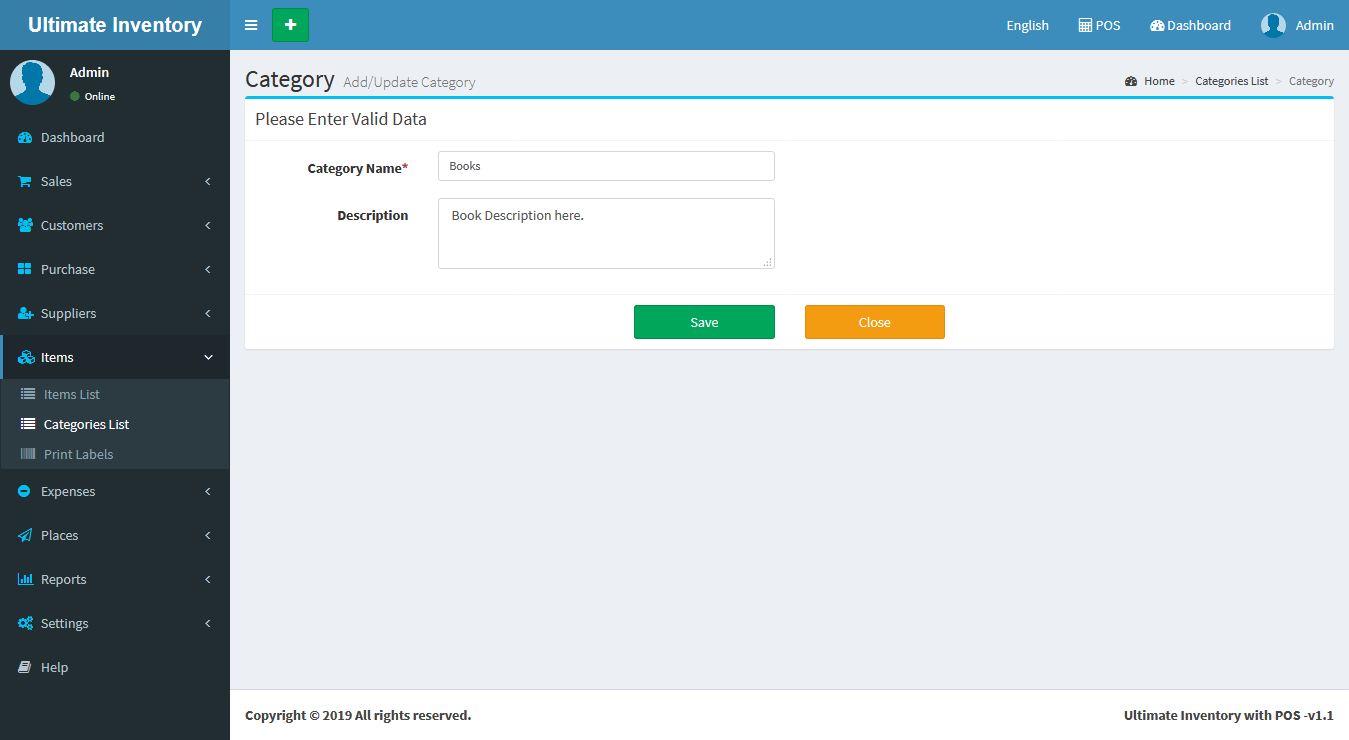 Adding a Categorys it's a very easy task. Enter Category name, description(Optional field) and click on Save button.