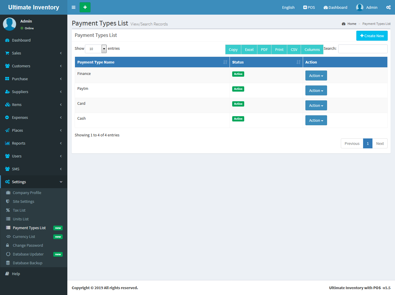 Payment Types Add :