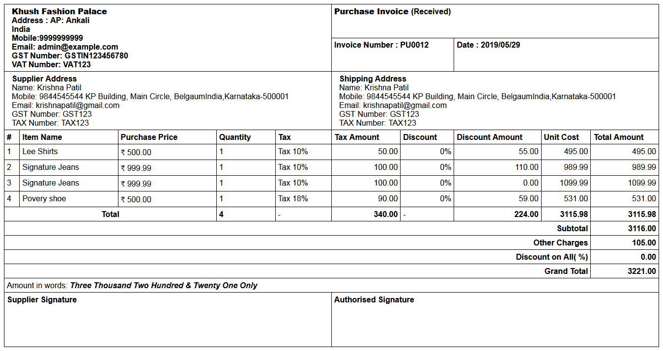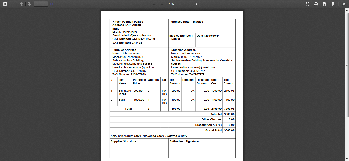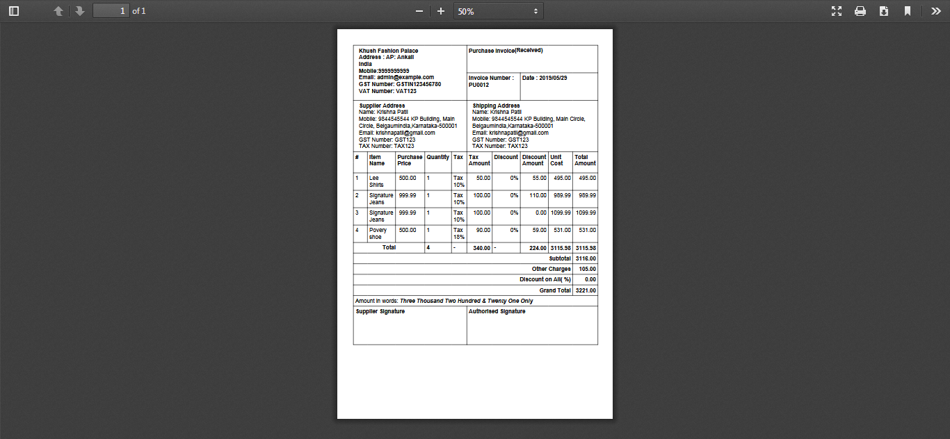 Purchase Invoice PDF :