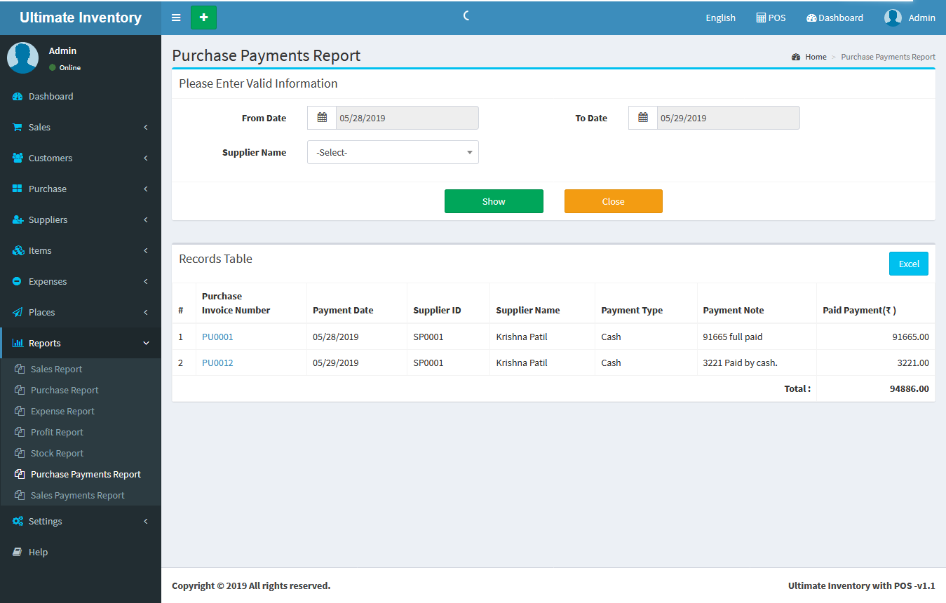 Report: Purchase Payments Report :