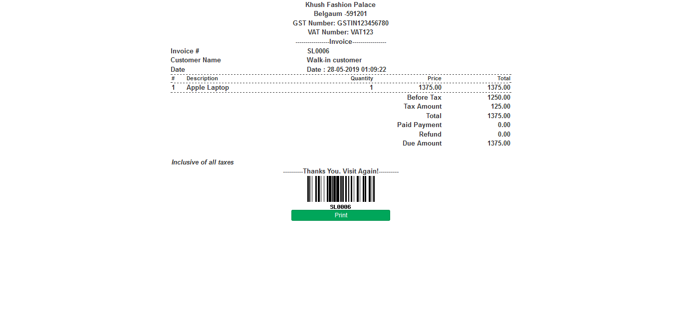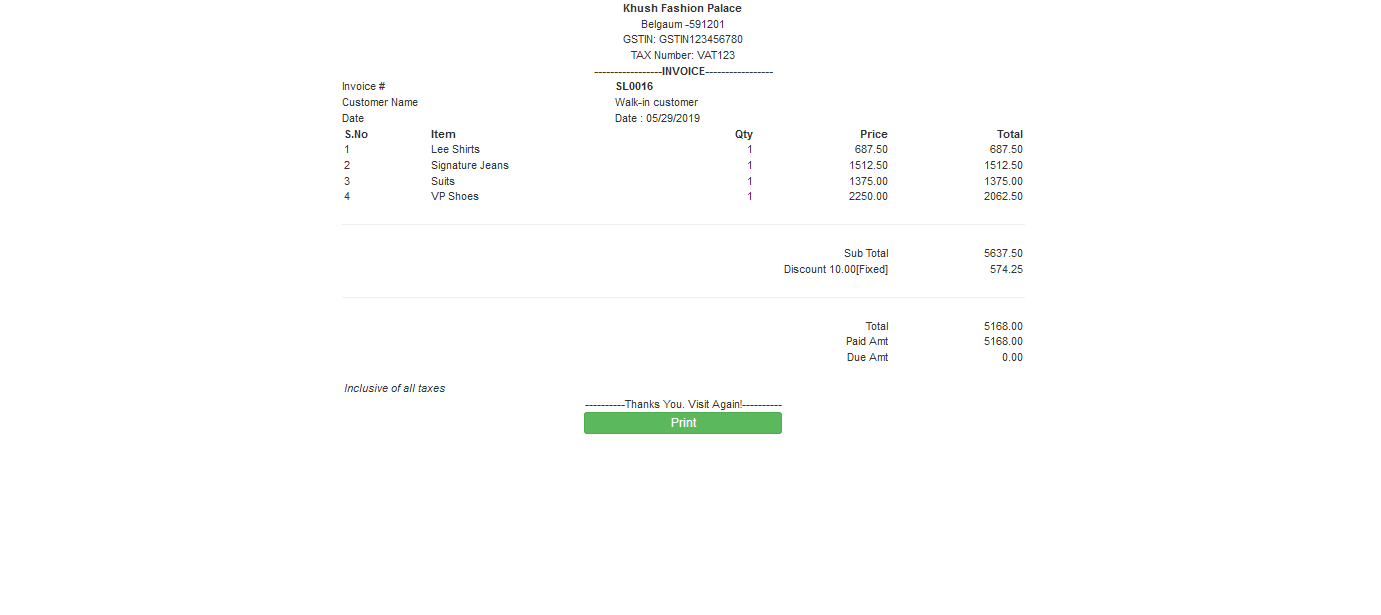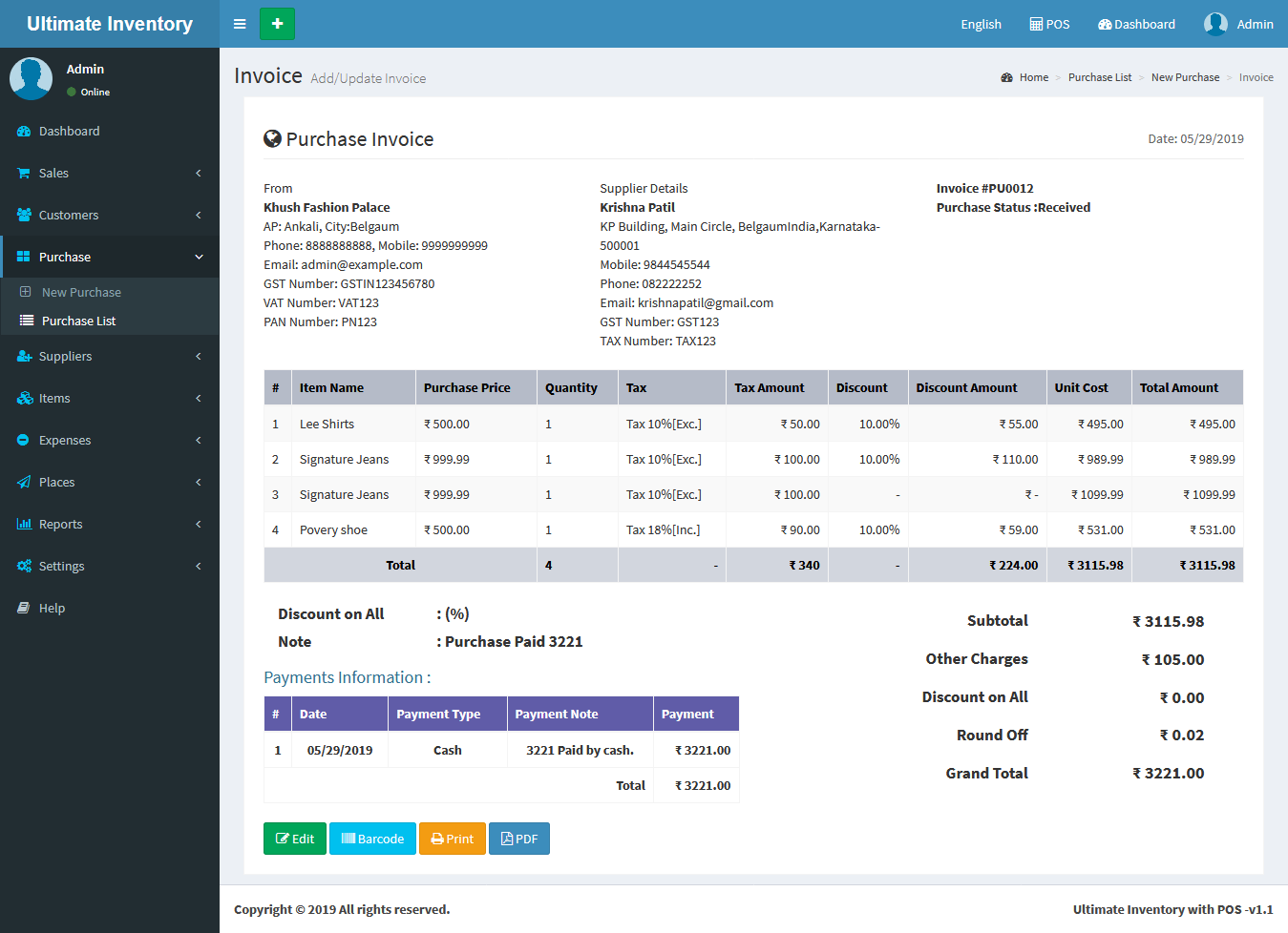 Purchase Invoice Print :