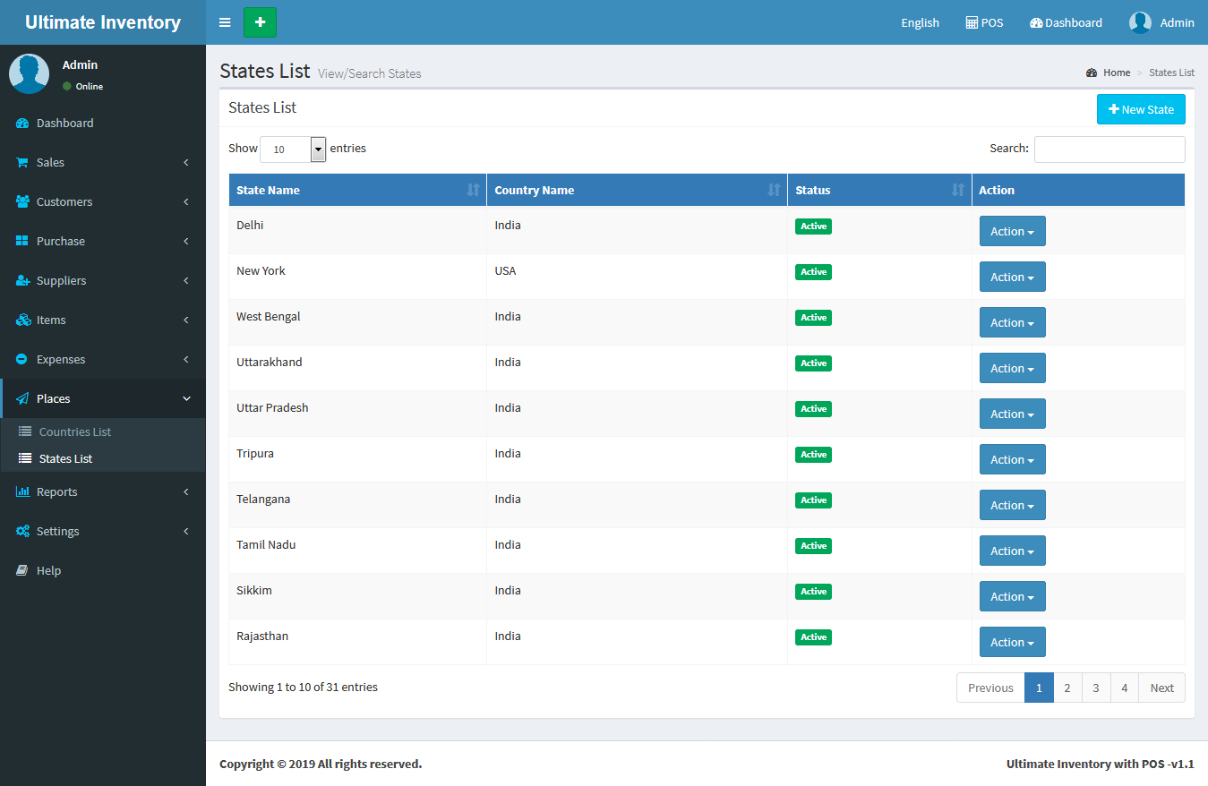 You can view the all the added State list and you can manage State list by Delete & Edit actions.
